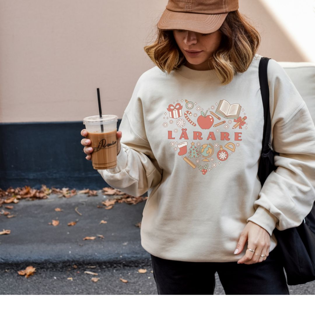En klassisk collagetröja med rund halsringning. Krympfri. Luftstrålegarn med en mjuk känsla och mindre risk för noppor.